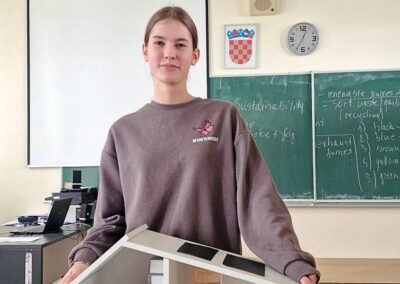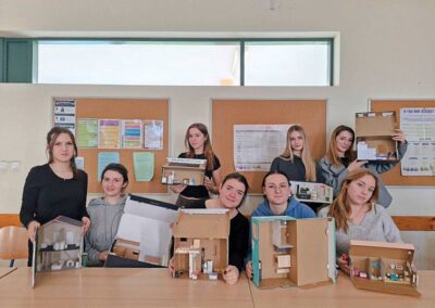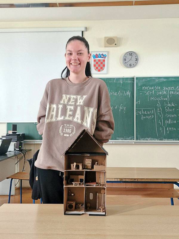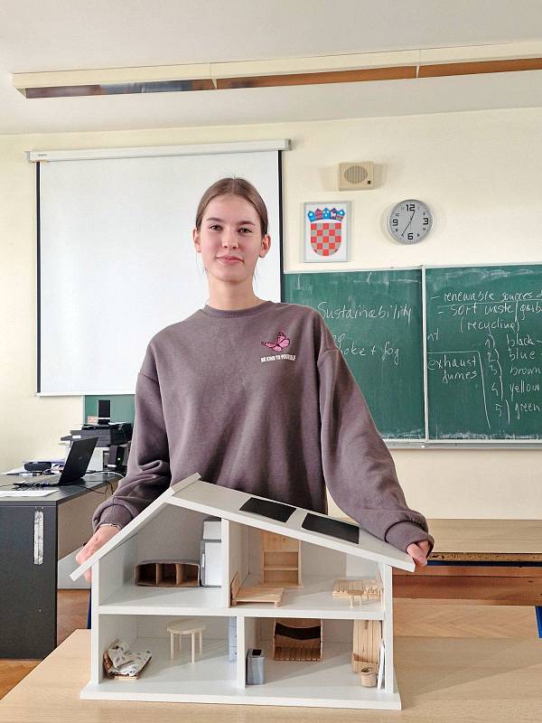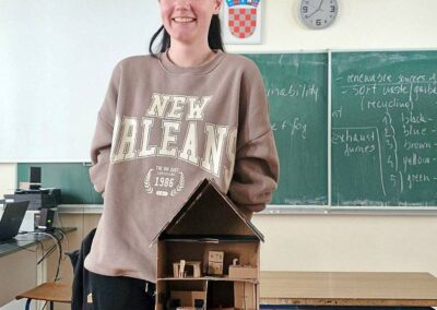 Posebnu su pažnju posvetili održivom načinu stanovanja i sve većoj popularnosti malih kuća (engl. tiny houses). One štede novac, alternativa su potrošačkom načinu života te nude slobodu koju možda ostali stambeni objekti ne nude. Učenici su dobili projektni zadatak – osmisliti takvu kućicu kao proizvod vlastite tvrtke te ga prezentirati ostatku razreda. Iako su mogli napraviti vrlo jednostavnu maketu kuće jer je to proizvod kojega plasiraju na tržište, učenici su se iznimno potrudili i izradili modele kućica s puno detalja. Osim toga, prezentacije proizvoda na engleskom jeziku pokazale su da učenici jako dobro vladaju engleskim jezikom i da pomno promišljaju o detaljima koji odražavaju održivi način života.
