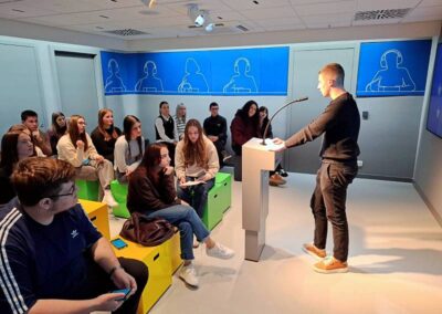 Nakon tribine učenici su posjetili Centar “Doživi Europu”, interaktivni edukativni prostor u kojem su imali priliku kroz igru uloga preuzeti ulogu eurozastupnika. Tijekom dvosatnog simulacijskog procesa učenici su igrali igru uloga „Budite europarlamentarci“. Tijekom igre učenici nakratko postaju zastupnici u Europskom parlamentu (MEP-ovi) i sudjeluju u simulaciji procesa donošenja europskih zakona — raspravljaju, pregovaraju i glasaju. Učenici su podijeljeni u fiktivne političke klubove / zastupničke skupine, simulirajući stvarnu strukturu političkih grupacija u EP-u. Svaki „zastupnik“ dobije ulogu i zadatak da sudjeluje u zakonodavnom procesu — raspravi, pregovorima i glasovanju.