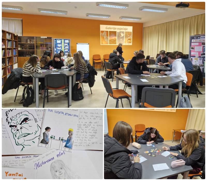 Reakcije učenika bile su iznenađujuće pozitivne: aktivno su sudjelovali, pokazali puno kreativnosti i vrlo ozbiljno pristupili zajedničkom radu. Upravo takvi trenuci dokazuju koliko školska knjižnica može biti živ prostor — mjesto gdje se knjige ne samo posuđuju nego i doživljavaju, preispituju i povezuju sa svakodnevnim životom.