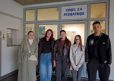 „Za osmijeh djeteta u bolnici“ je projekt kojeg su pokrenuli pedagoginja A. Alar, dr. I. Krajinović i dr. M. Martinović sa suradnicima, a u okviru kojeg učenici naše škole volontiraju na odjelu pedijatrije Opće bolnice “Dr. Josip Benčević” srijedom od 16.00 do 17.30 sati.