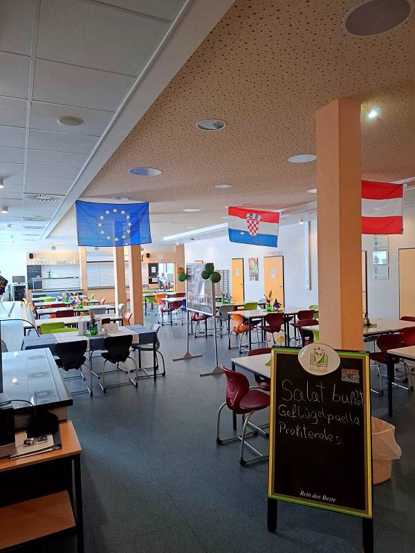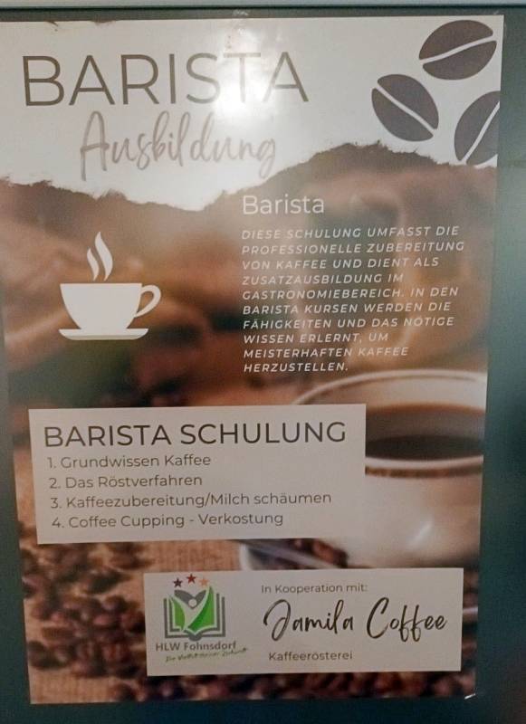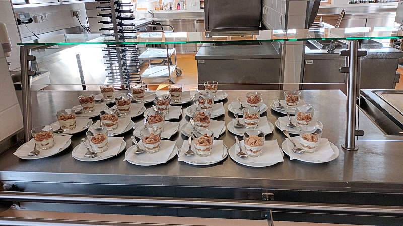 Škola raspolaže s četiri moderno opremljene kuhinje u kojima učenici tri dana tjedno pripremaju i poslužuju obroke svojim kolegama. Obroci su jednostavni, ali ukusni; na satu kojem sam prisustvovala pripremao se džem od brusnica i tradicionalni Kaiserschmarrn. Učenici tijekom školovanja mogu steći i certifikat za baristu te proći edukaciju za pripremu jela za vegetarijance i vegane.