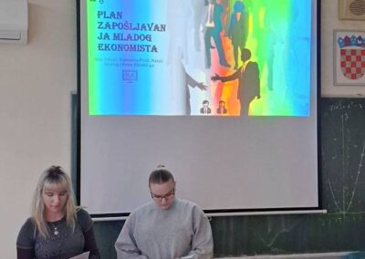 U sklopu nastave predmeta Radno pravo, učenici 4. c razreda proveli su sveobuhvatan projektni zadatak posvećen temi nezaposlenosti mladih u Hrvatskoj i Europskoj uniji. Budući da je riječ o temi koja izravno utječe na njihove buduće karijere, želio sam nastavu obogatiti suvremenim metodama koje sam upoznao tijekom svojeg job shadowinga Erasmus+ projekta 2025-1-HR01-KA121-VET-000309294, od 17. do 21. studenog 2025. u srednjoj školi u Fohnsdorfu u Austriji. Upravo to iskustvo motiviralo me da učenicima pružim priliku da rade istraživački, analitički i praktično — na način kako se to radi u modernim europskim strukovnim školama. Projekt je obuhvatio četiri radne skupine, pri čemu je svaka imala specifičan i izazovan zadatak. Cilj je bio da učenici razviju kritičko mišljenje, istraživačke kompetencije, razumiju tržište rada i vještine potrebne za zapošljavanje.