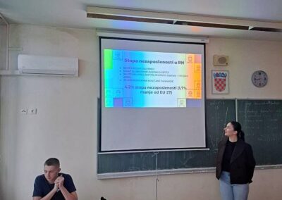 Treća skupina izradila je cjelovit prijedlog lokalnog projekta koji bi mogao pomoći u smanjenju nezaposlenosti mladih u njihovoj zajednici. Projekt je uključivao suradnju s lokalnim poduzetnicima, udrugama i jedinicama lokalne samouprave. Učenici su definirali budžet, aktivnosti poput radionica digitalnih vještina, mentorstva, karijernog savjetovanja i povezivanja mladih s poslodavcima. Projekt je bio oblikovan prema modelima dobre prakse koje sam vidio tijekom svojeg job shadowinga — gdje škole aktivno surađuju s lokalnom zajednicom.