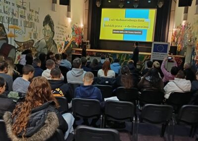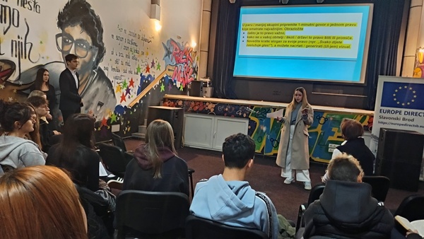 9. prosinca 2025. (10.30 – 13.00), povodom obilježavanja Međunarodnoga dana ljudskih prava, organizirana je radna sjednica gradskoga Parlamenta mladih u velikoj dvorani brodskoga Centra mladih. Na događanju naslovljenom O pravima djece i mladih – uoči Međunarodnoga dana ljudskih prava sudjelovalo je četvero učenika naše škole – Monika Bilokapić i Lea Kolesarić (2. e) te Anamarija Užarević i Ajdin Kuduzović (3. c) – u pratnji prof. Ivane Opačak. Iskrene čestitke Anamariji i Ajdinu, koji su veoma uspješno moderirali događanje i radionicu o pravima djeteta.