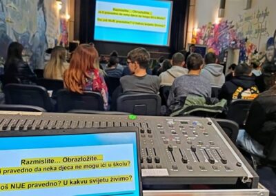 Najzanimljiviji dio svakako je bila radionica O pravima djeteta – iz dječje perspektive u izvedbi naših učenika Anamarije i Ajdina (pod mentorstvom prof. Opačak). Naši upravni referenti demonstrirali su veliko znanje o pravima i iznimne komunikacijske vještine, a njihovi vršnjaci pokazali su veliko zanimanje za temu, te su veoma aktivno sudjelovali u raspravi i skupinskome radu. Mladi zastupnici u gradskome Parlamentu ne samo da poznaju svoja prava, nego i veoma rječito argumentiraju koja prava (i zašto) zaslužuju posebnu pažnju.