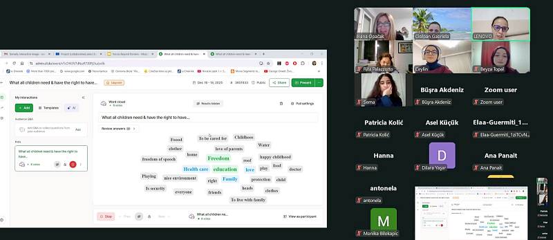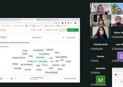 Interaktivni digitalni alati imali su važnu ulogu tijekom sastanka. Sudionici su zajednički izradili oblak riječi pomoću alata Slido, odgovarajući na pitanje: „Što je svoj djeci potrebno i što zaslužuju/imaju pravo imati?“ Aktivnost je vizualno istaknula zajedničke vrijednosti poput sigurnosti, (obiteljske) ljubavi, obrazovanja, slobode i jednakosti.