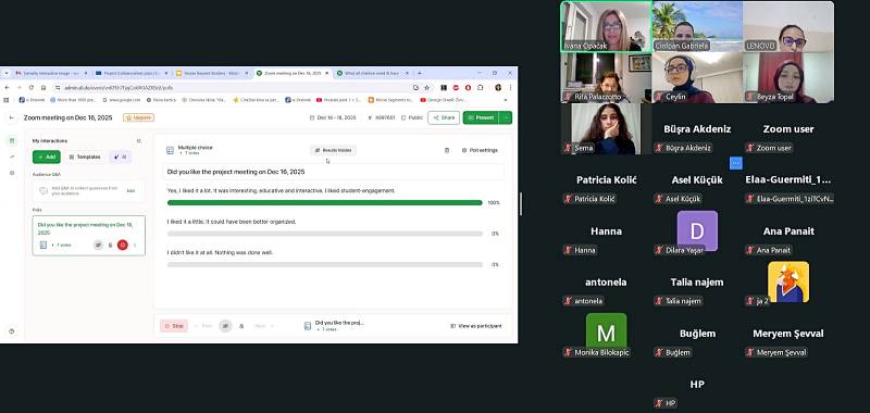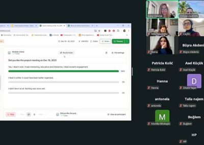Online sastanak na platformi Zoom moderirala je Ivana Opačak, a započeo je u toplom predbožićnom ozračju koje je istaknulo temeljne vrijednosti projekta: empatiju, suradnju i poštovanje različitosti. Sudionici su se povezali preko granica kako bi se osvrnuli na zajednički projektni put i učinke suradnje.