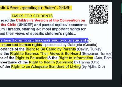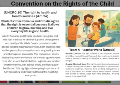 - o pravu na obrazovanje i pravu na pristup informacijama (u fokusu Tima 3, koji je koordinirala nastavnica Gabriela Ciolpan iz Rumunjske) govorila je učenica iz Rumunjske;