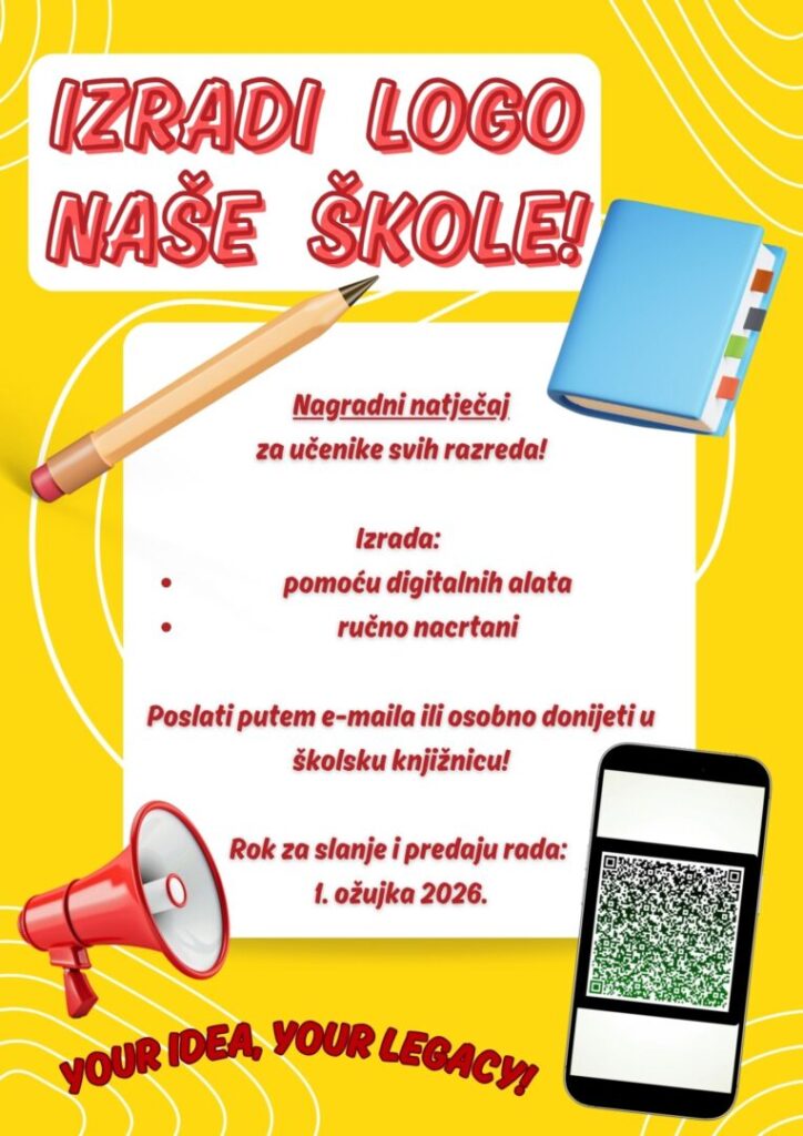 Pristigle radove razmotrit će povjerenstvo sastavljeno od učenika i nastavnika, a odabrani logo postat će službeni logo škole. Autor pobjedničkog rada bit će nagrađen simboličnom nagradom, ali i priznanjem za trajni doprinos vizualnom identitetu škole.