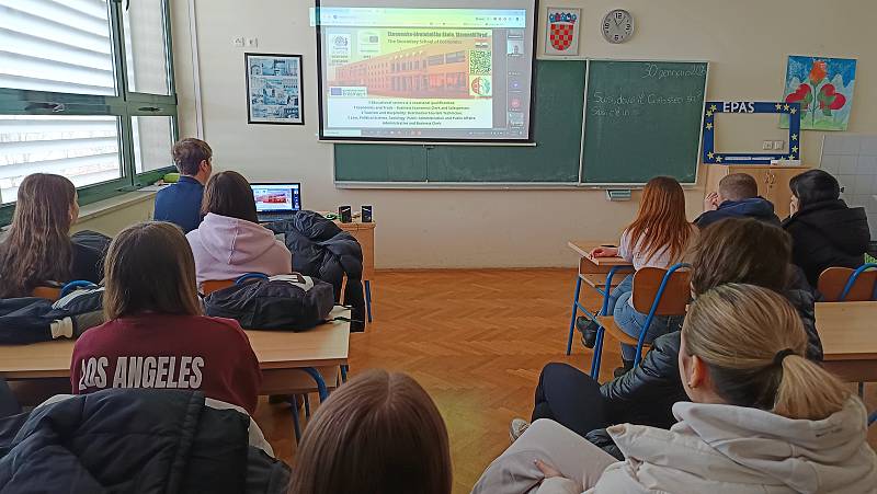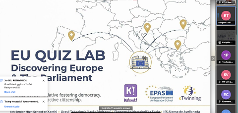 2. veljače 2026. organiziran je EU Quiz Lab – Discovering Europe & the European Parliament, međunarodno online događanje registrirano na platformi together.eu. Mrežni interaktivni kviz organiziran je u okviru programa Škola ambasador Europskoga parlamenta (EPAS) s ciljem jačanja europske i medijske pismenosti te aktivnoga europskog građanstva kroz dinamično i zabavno kviz-iskustvo. Povod je bio obilježavanje Dana sigurnijega interneta (10. veljače) te priprema ambasadora EP-a za obilježavanje Dana medijske pismenosti i Dana Europe (u travnju i svibnju 2026.). Naša se škola, kao jedna od organizatorica kviza, može pohvaliti iznimnim rezultatom: naši su ambasadori pokazali veliko znanje – čak troje učenika (od ukupno preko 350 sudionika iz 40 škola iz Grčke, Rumunjske, Španjolske i Hrvatske) plasiralo se među petero najuspješnijih, zauzevši 1., 2. i 4. mjesto.