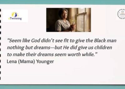 Završetak projektnoga rada dobiva posebnu simboličku vrijednost upravo sada, u veljači, tijekom Mjeseca afroameričke povijesti. Završni sastanak, na kojemu su učenici i nastavnici predstavili rezultate svoga rada i sudjelovali u evaluaciji projekta, dodatno je naglasio važnost razumijevanja (ne samo) afroameričkoga kulturnoga i povijesnoga nasljeđa. Drama A Raisin in the Sun snažno progovara o iskustvu afroameričke obitelji suočene s rasnom diskriminacijom, društvenim nejednakostima i borbom za dostojanstvo i ostvarenje snova. Time ovaj projekt nadilazi književnu analizu i postaje doprinos obilježavanju Mjeseca afroameričke povijesti, potičući učenike na promišljanje o osobnome identitetu i kulturno-povijesnome nasljeđu, jednakosti, ljudskim pravima i važnosti interkulturalnoga razumijevanja. Završna prezentacija i evaluacija stoga ne predstavljaju samo zaključak projekta, nego i svjesno uključivanje u širi društveni i obrazovni kontekst koji naglašava vrijednost raznolikosti, tolerancije i poštovanja prema različitim kulturama i povijesnim iskustvima, ali i osobnim snovima.