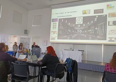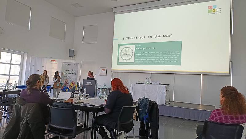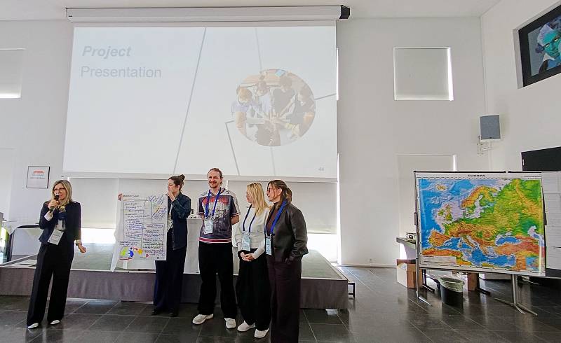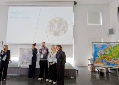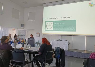 Tijekom trodnevnoga programa sudionici su imali priliku sudjelovati u nizu predavanja i radionica s ciljem jačanja suradnje i razvoja kvalitetnih međunarodnih projekata. Seminar je započeo uvodnim obraćanjem organizatora te predstavljanjem primjera dobre eTwinningove prakse. Prof. Opačak imala je čast svjedočiti predstavljanju eTwinningova projekta Raisin(g) in the Sun, u kojemu je i sama, sa svojim učenicima, sudjelovala u razdoblju od rujna 2025. do veljače 2026. godine. Posebno je zadovoljstvo bilo uživo upoznati kolegice iz Njemačke s kojima ju je eTwinning povezao, kao i učenice, članice međunarodnoga tima koji je tijekom projektnoga rada koordinirala. (Na fotografiji su prof. Opačak i suosnivačica projekta / izlagačica Felicitas Fischer, nastavnica engleskoga i francuskoga jezika te medijske pismenosti u Gesamtschule Ückendorf, Gelsenkirchen, Njemačka, te dvije učenice iz Njemačke.)