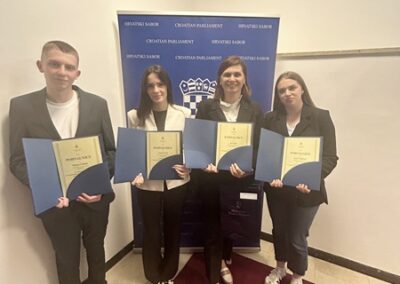 Učenici Ekonomsko-birotehničke škole Slavonski Brod sudjelovali su dana 20. travnja 2026. na 13. simuliranoj sjednici Hrvatskog sabora za učenike srednjih škola. Umjesto političara, saborske klupe ovoga su puta zauzeli učenici. Vanessa Ivić, Mateo Lebić i Lana Čeliković (4. C, upravni referent), dobili su priliku zakoračiti u svijet politike i na jedan dan postati zastupnici, predlagatelji zakona i glasnogovornici generacije kojoj pripadaju. To ne bi bilo moguće bez mentorstva prof. Ane Jelić s kojom su se mjesecima pripremali.