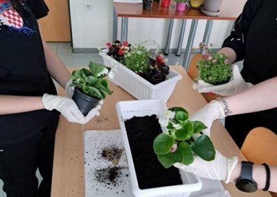 U sklopu praktičnih aktivnosti sudjelovali su u sadnji cvijeća u učionici, čime su aktivno doprinijeli uređenju i očuvanju školskog okoliša (učenici INA Ekološka grupa i učenici 2. d razreda). Poseban naglasak stavljen je na poučavanje o ulozi fotosinteze kao ključnog procesa za proizvodnju kisika i održavanje života na Zemlji.